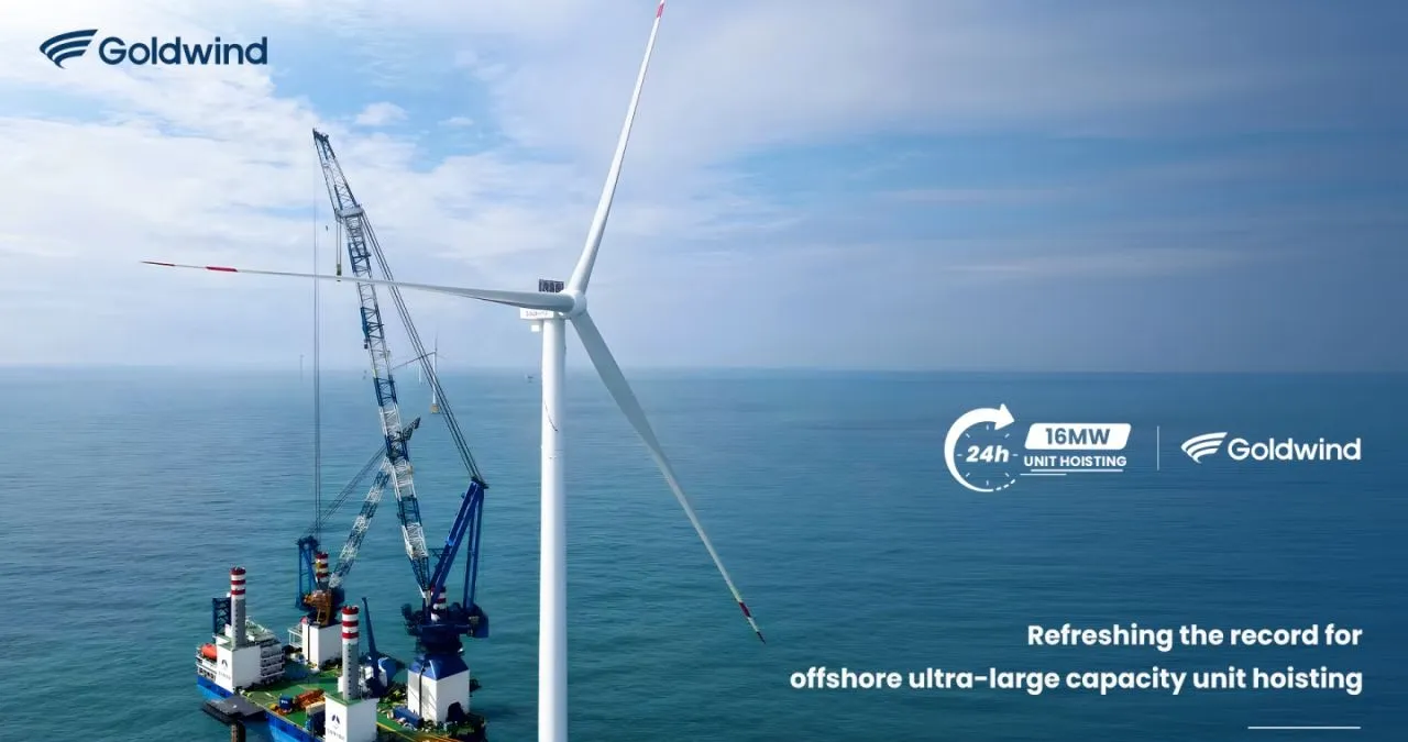 我国风力涡轮机制造商金风科技在 24 小时内装置了其大型 16 兆瓦 (MW) 海优势力涡轮机,创下了“破纪录”的成果。